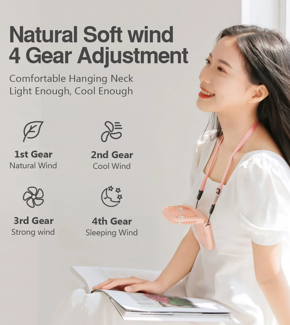 Fan Mini Digital Display Hanging Neck Fan Portable USB Rechargeable 4 Speed Mute Personal Fan Waist Clip Fan Summer Air Cooler