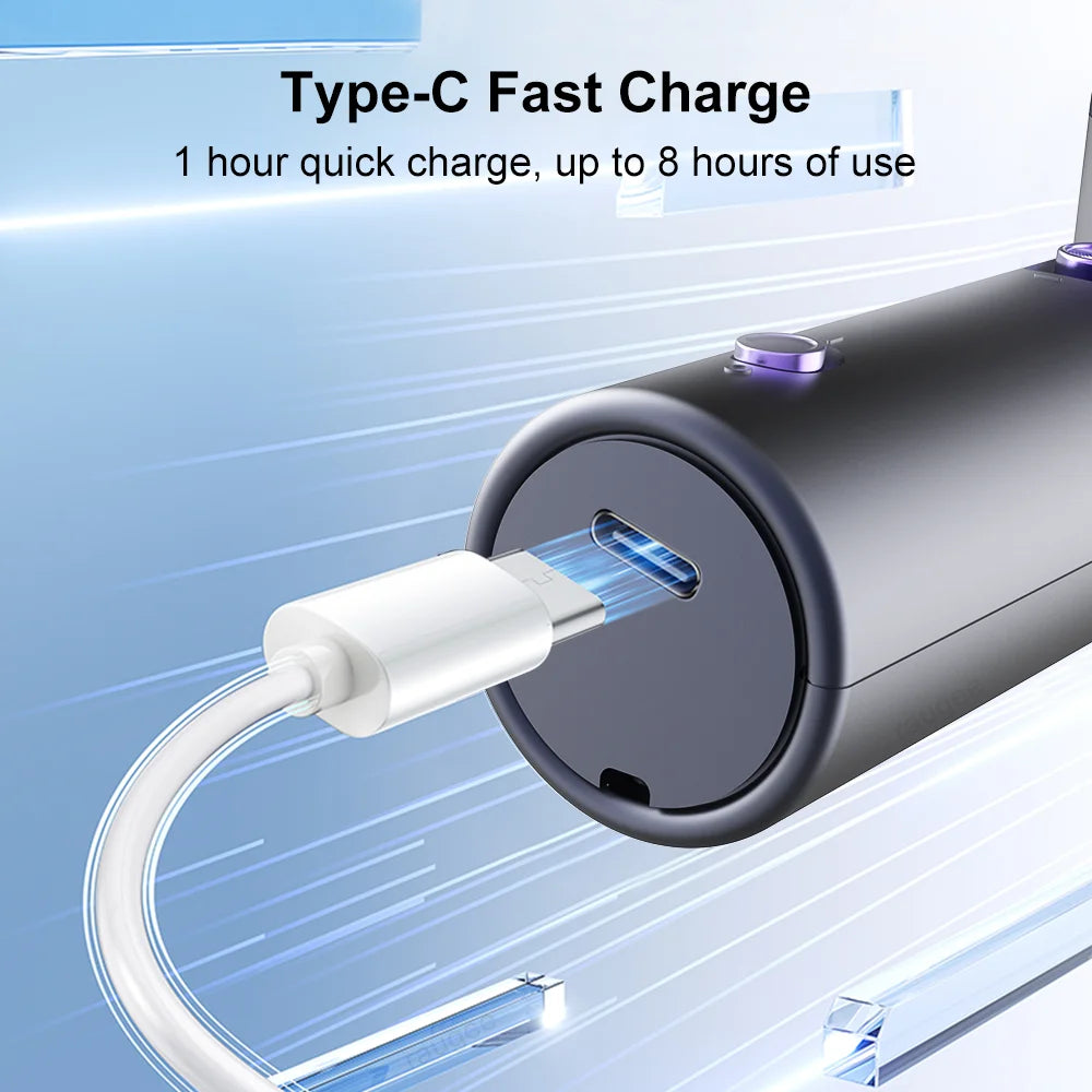 【Fast Charging and Long Battery Life】Equipped with a 1800mAh battery, this personal fan supports 10W fast charging, taking only 1 hour to charge full, and providing up to 8 hours of usage time.When used at the highest speed (20,000 RPM), the operating time is approximately 2 hours, while at the lowest speed (100 RPM), the operating time extends to about 8 hours.