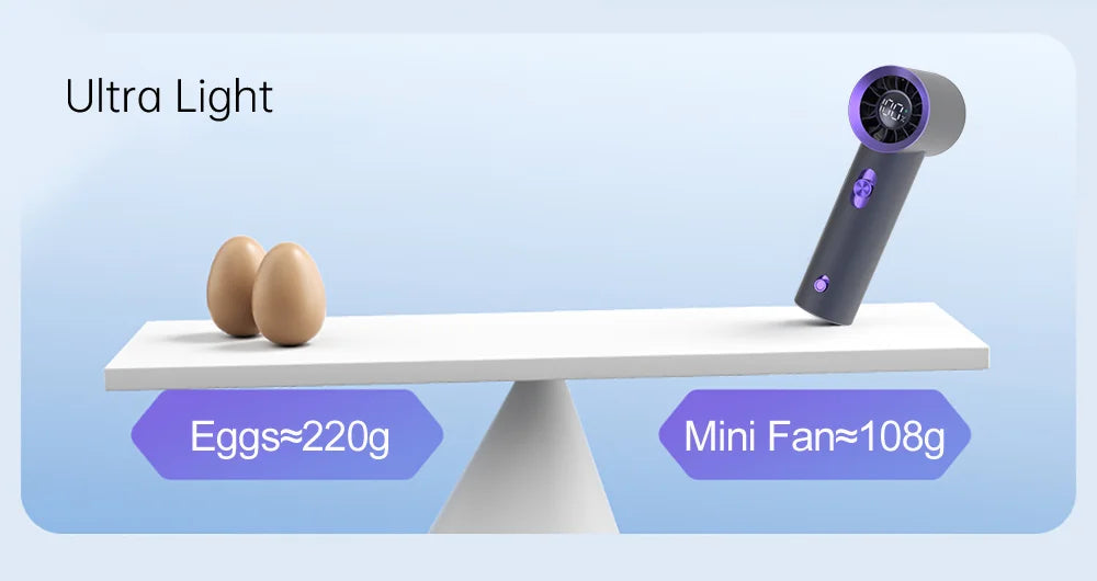 Portable Fan Turbo Wind 100 Strong Speed Mini Cooling Fan Electric Handheld Fan with Digital Display 1800mAh USB Rechargeable