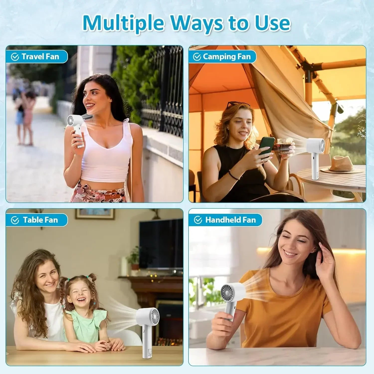 Use as a handheld fan, stable desk fan (anti-slip base included), or travel/camping companion – all in one sleek device.